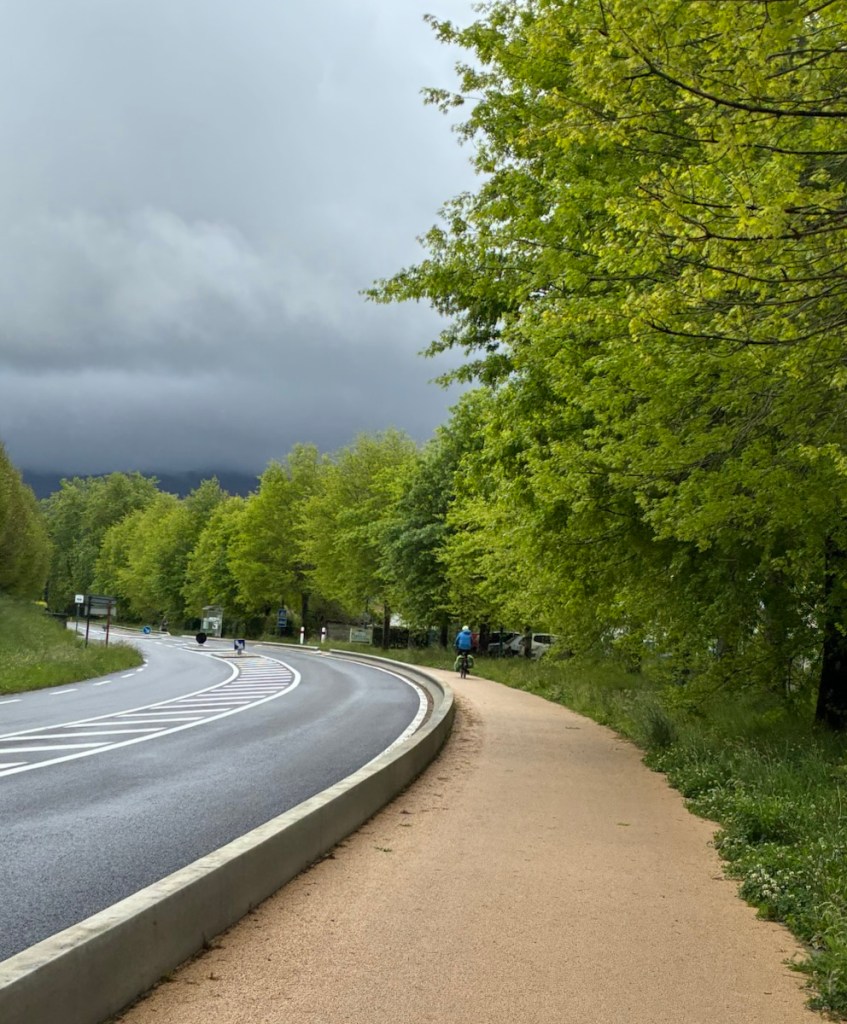 But this year we were determined to give Spain a try and had a plan to ride the coast via Eurovelo 8 more or less to Barcelona and beyond. And if it started to get too arid or sunny for us, then we’d head up towards the mountains and green Basque Country instead. That’s the turn right.