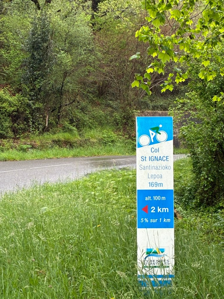 Dinner in our neighborhood at La Cervecería del Antiguo. It’s fun to try a neighborhood place and enjoy inventive Pinxos. Baked confit tomato with sheep cheese flakes and walnuts.Gamberro bluefin tuna tartare and pulpo.Heading out to ride to Saint-Jean-de-Luz, France. Only thing between us and France is another big climb.Not every mile is beautiful and picturesque. I try to remember to take photos of the less glamorous parts of a ride. Turning up the road to the Jaizkibel summit.The spine is the Jaizkibel mountain range. Our climb started in Lezo and had a gain in altitude of 455 m (1,493 ft) over 8.0 km (5.0 mi).Fueling for the climb with chocolate milk.