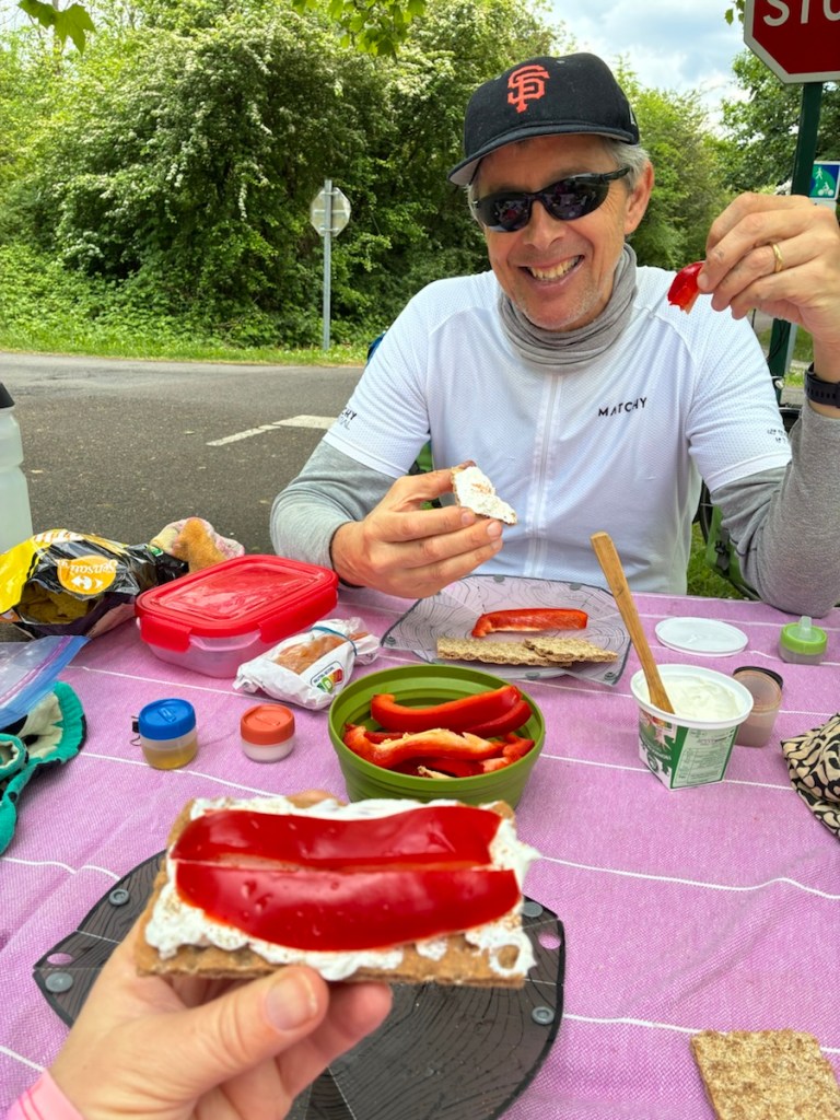 Climbing through commercial forests outside of Libramont. The drab monoculture was offset by the beautifully smooth new concrete path.The high point at an eye watering 560m! Ok, the Ardennes are not a high mountain range. But the buttery smooth pathway decent and rollers through lush mixed forests was a blast.Our favorite Gazpacho flavor currently; Tomato, Mint, and Basil