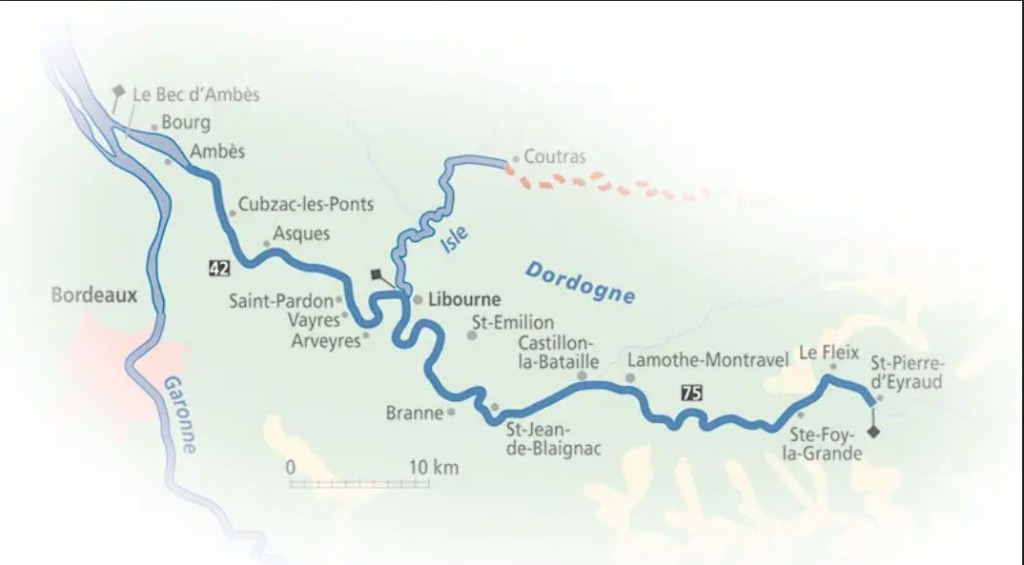 I took a quick dislike of Libourne riding in to town. It seems to suffer from ‘famous town adjacent’ syndrome. Folks were not friendly. Car drivers were downright hostile, and it managed to be both dead, with little activity in the streets, and hectic, with car drivers behaving as if they were negotiating a busy crowded downtown. It’s a difficult note to strike, dead but hectic, but they managed it. The first restaurant we went to, where our hotel had made a reservation for us, only had tall tables available. The last thing two tired cyclists want to do is perch on backless high stools to eat. We said no thanks and headed to the Vietnamese restaurant, the only other place open on a Sunday. It was quite good and with an impressive wine list. That must be expected in this area of famous wines.