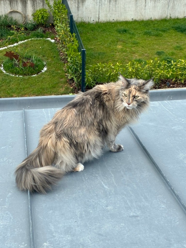 She was allowed out on the balcony and roofline.She would do a circuit and return by the window on the other side.With scaffolding around the building however, she figured out how to get down to the ground.