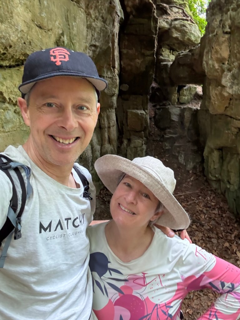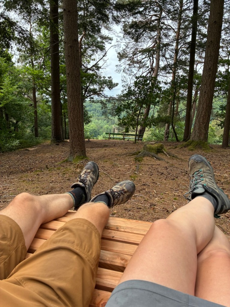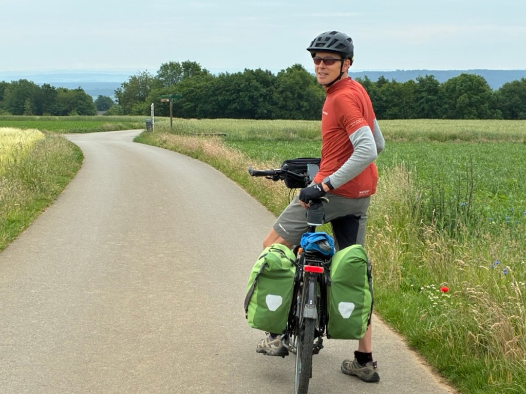 I wanted to see this beautiful rail viaduct near Bertrix, so we opted for a hillier route off the RAVel for a bit. Smiling at the top of one of the many climbs in the Ardennes