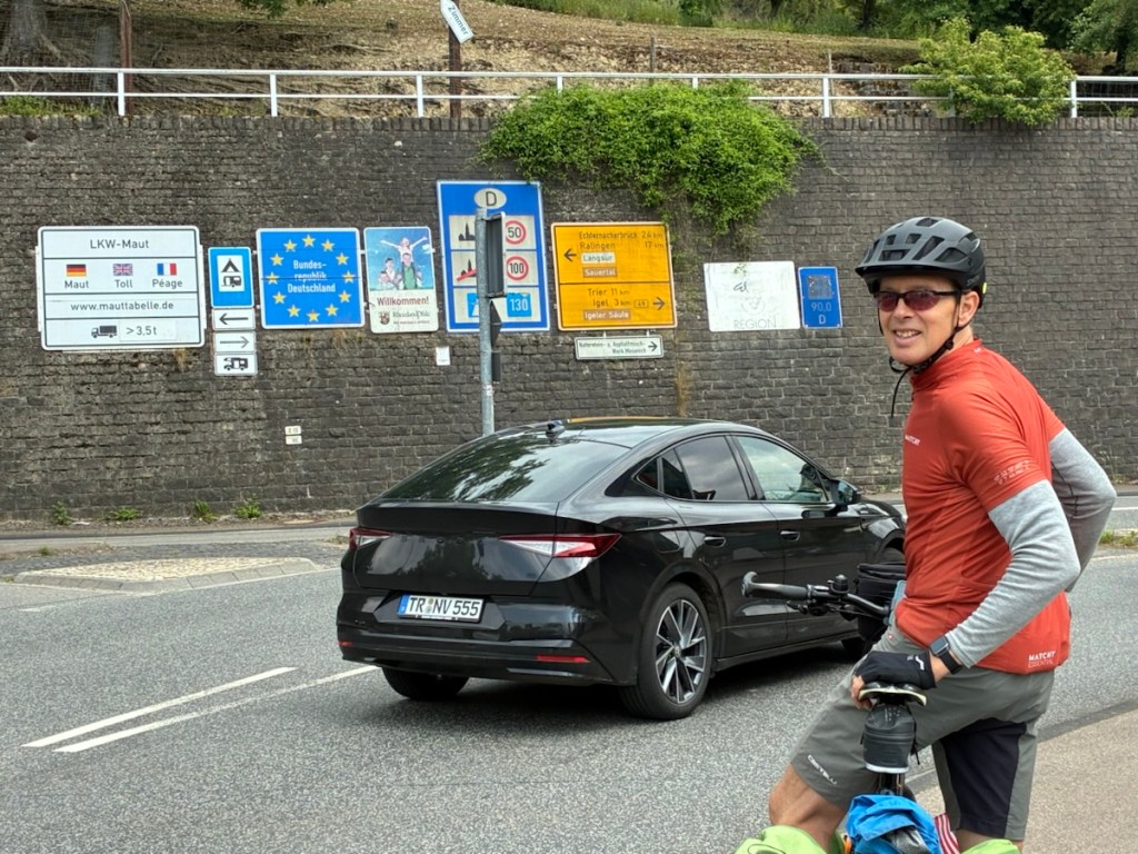 Since we spend so much time on bikes we entertain ourselves talking about bikes and bike infrastructure quite a bit. A lot. Ok, constantly! We had to detour off the river path to obtain that giant pastry and once again we were reminded that although Germany knocks it out of the ball park with bike paths connecting towns, in town is a different story. It was quite inhospitable in Merzig, the short ride from the river path to Bäckerei & Café Tinnes had zero bike infrastructure. The contrast with France, where so many towns have been given what we call the French City 2.0 treatment in town, with new bike and ped lanes and markings and calmed traffic, was dramatic. It was not an environment that would encourage bicycle use for errands and transportation.