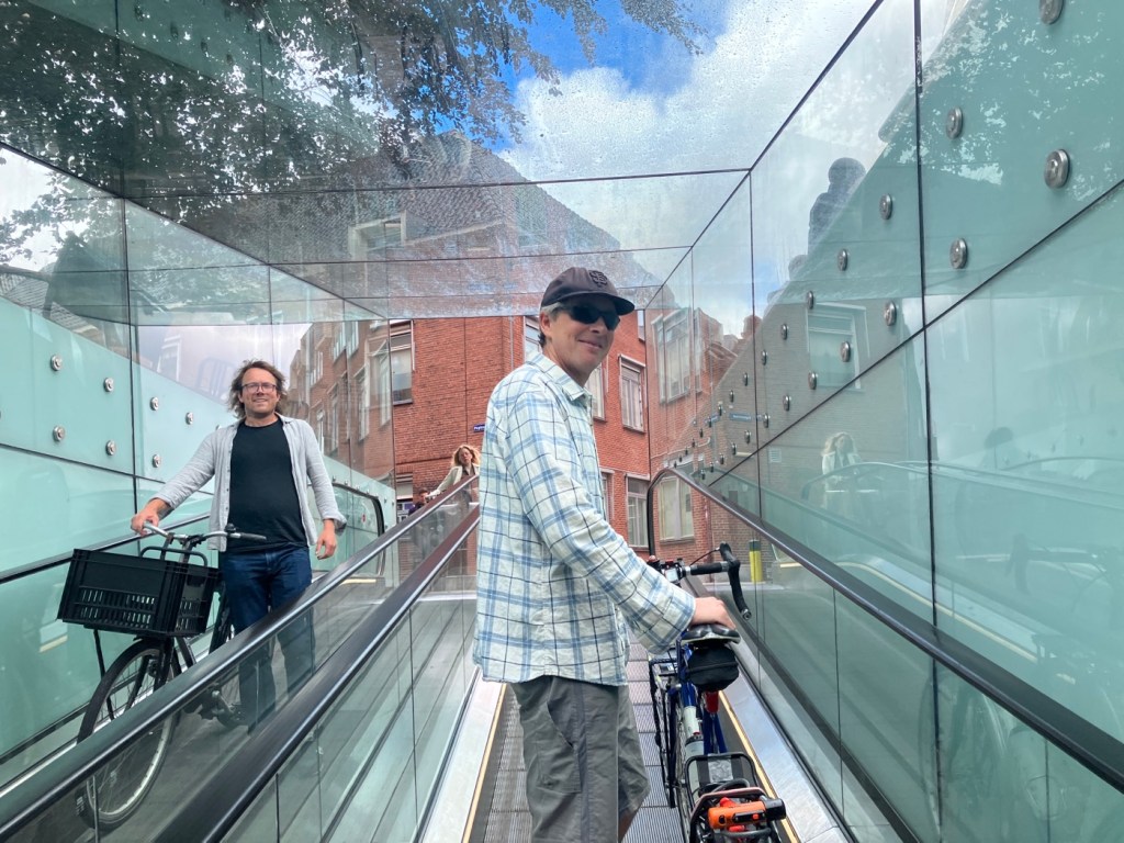 The best kind of photobombing. A happy cyclist behind a happy cyclist. The gorgeous bike parking garage in downtown Groningen evokes these feelings.
