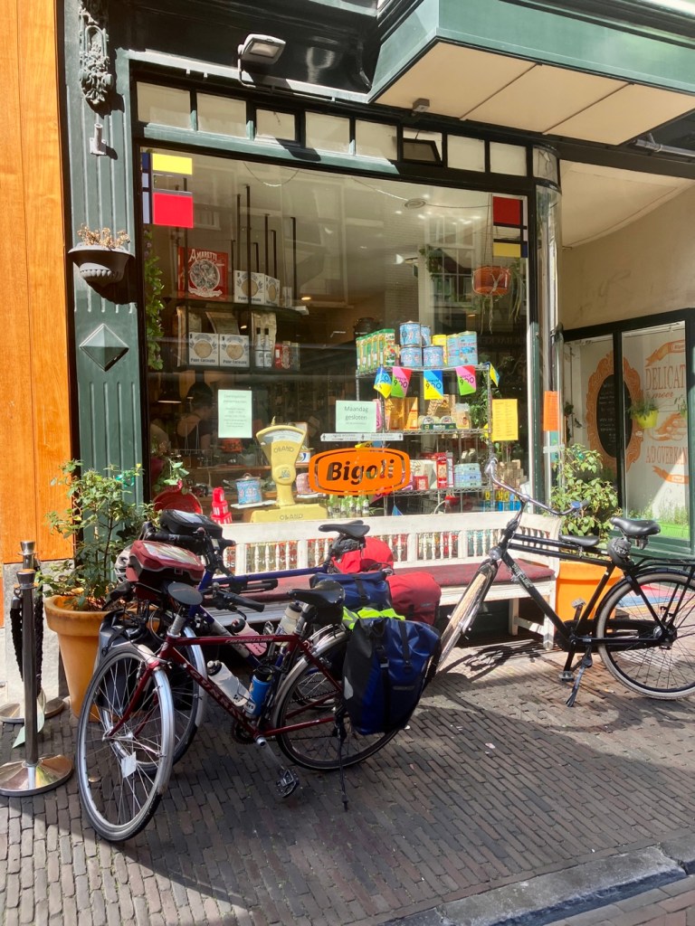 We were quickly reminded of why the Netherlands is still the gold standard for cyclists around the world. We needed to run a few errands while in Groningen for two nights, and those errands took us out to big box store land (A big cycling store, of course.). It was a breeze, a joy, to cycle there on wonderful protected cycle tracks. Almost no stop signs and maybe one or two traffic signals. The traffic flow was controlled with yield symbols which allowed for such seamless cycling. It was so fun to note that people on bikes are separated from people driving cars by space in so many situations. Underpasses for bikes. Bridges for bikes. Wide wide lanes where we could ride two abreast and chat and other people on bikes could easily pass us. If you’ve ever tried to cycle to big box store territory in the US you will understand our delight.
