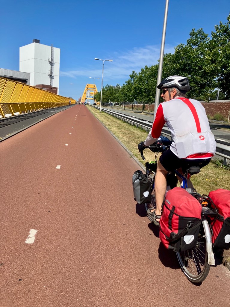 Even animals get their own safe pathways across the roads. This is one of two wildlife overpasses we rode under while crossing the Panbos National Forest.A quick stop to pick up lunch in Utrecht. And across and out of Utrecht we go. With many other people on bikes.Infrastructure like this makes cycling such a popular and valid way to travel. You truly feel seen and cared for as a person on a bike.And on towards Den Hague we go. Summer cycling sights.