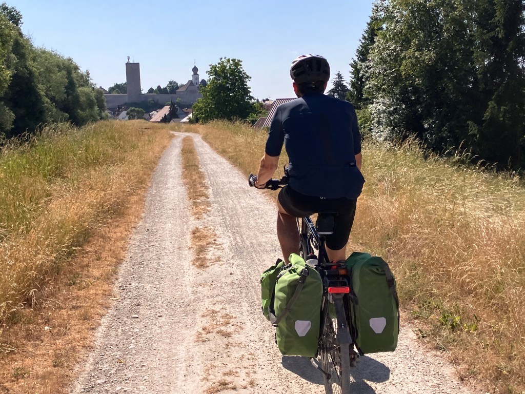 Our cozy apartment in Albertville had convenient balcony drying The medieval village of Conflans is just a short walk up the hill from downtown Albertville. We really enjoyed learning more about life and history of the Savoie at the small museum.Spring fragrance in Conflans.La Bicyclette in Albertville is a great bike themed bar with craft beers, a very pleasant garden, and of course, wine -:) .Heading out of Albertville for a short day to Annecy. How can we make this longer and more fun?Taking the rolling side gravel and dirt paths instead of the paved cycle path.Happy to snag a lunch bench on this busy holiday weekend.Another side excursion to get some views and hills.Oops, too much hill and wicked steep in parts! A bike push assist.Yup, the trail goes through this farmhouse. We’ve learned that France is quite liberal with protecting historic rights-of-way and unless there is a clear Privé sign, we press on.Cheryl enjoying the side excursion downhill.Fun descent in a bit of mud. First one to fall down buys the wine!