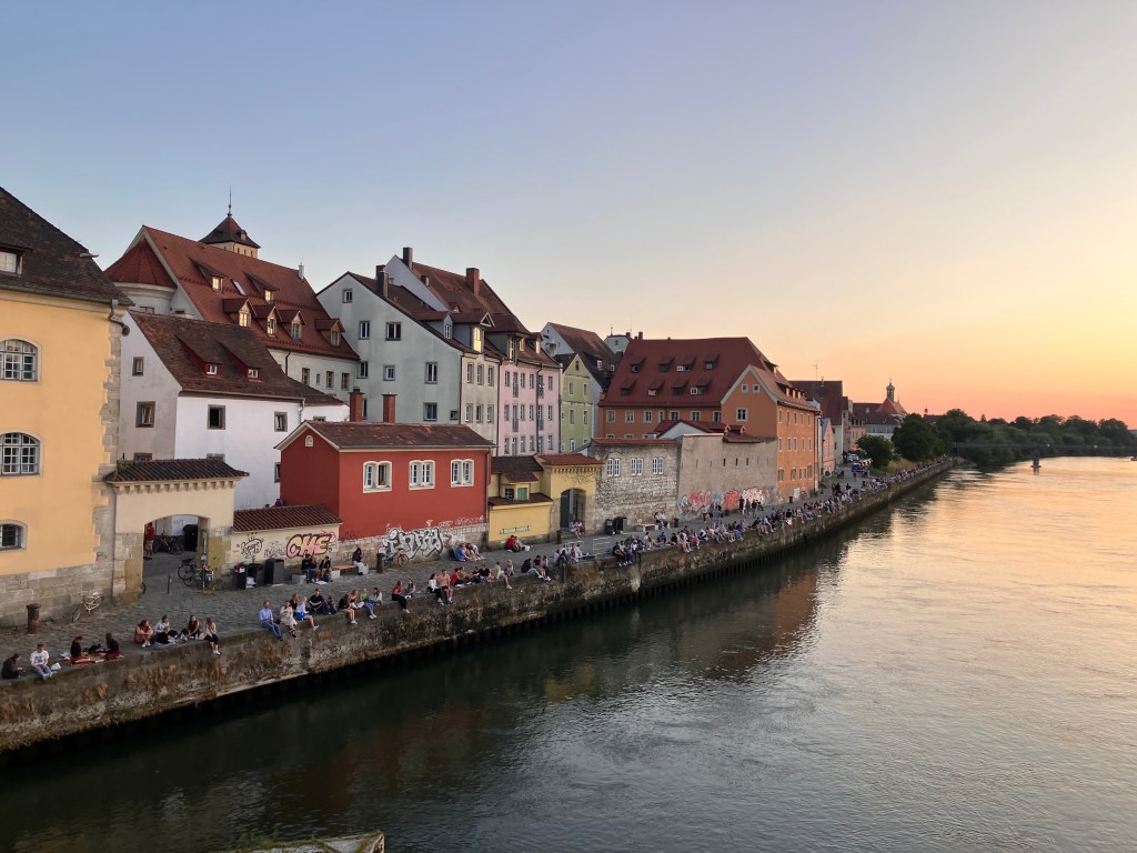 A very apt warning sign. I will not miss hearing Rich’s head connect with room doorways, low hanging light fixtures, and train doors. We hang things from the doors in our rooms as mitigation.Sunset light on the happy travelers in Nagasaki.