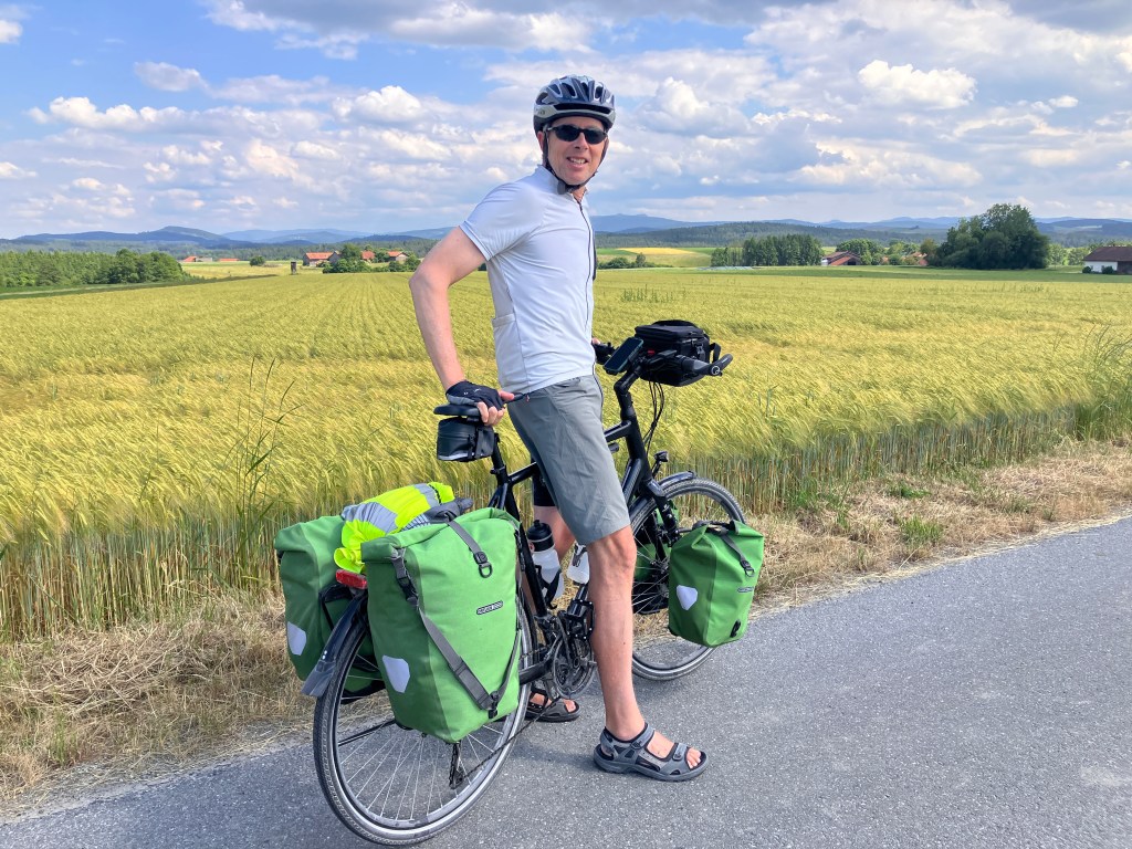 We were following the V63 cycle route up (and down) the Isère which includes some dedicated path sections, but mostly quiet roads.Hills, rain, and another forced smile.