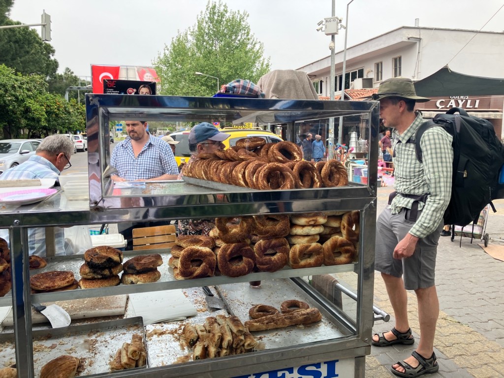 A very common sight, communal cat breakfast.The model of the Basilica gives you detail of what you’re seeing.The size of the Basilica, and the amount of carved marble, is amazing. Heading to the castle, past what we called grad student alley. Piecing together even some of these fragments would take an entire career.One town, four amazing attractions.From castle hill looking towards Ephesus.Off to catch that bus. Quick detour through the Saturday market.Bus snacks being acquired.