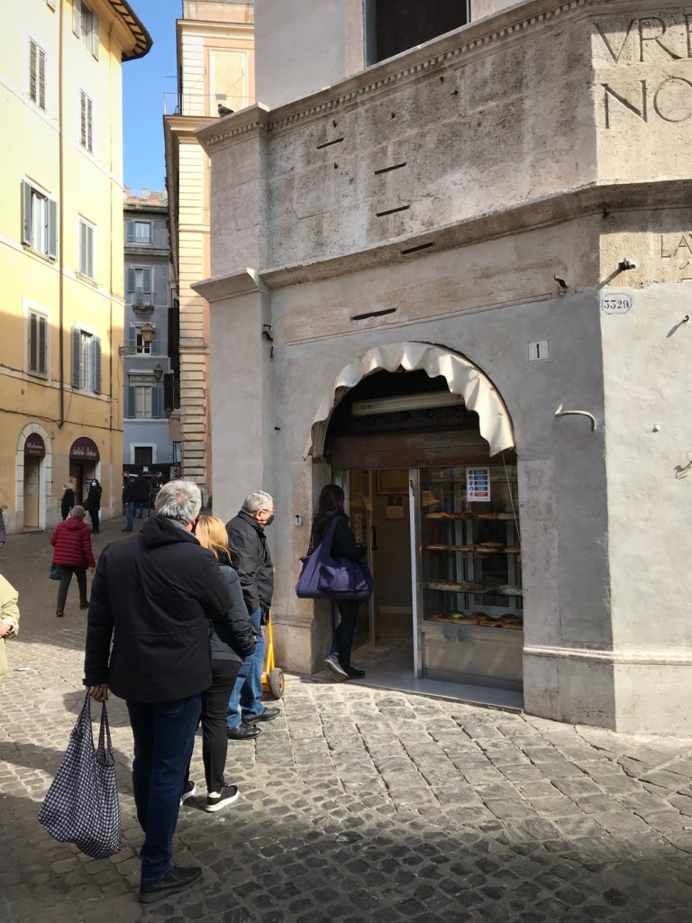 The venerable Pasticceria Boccione in Rome, which features 300-yr old recipes for wood-fired Pizza Ebraica and other Kosher treats. Luckily, Cheryl was already inside!
