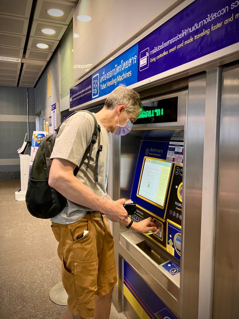 Adding fare to our MRT tap cards…once you get the hang of it, it sort of makes sense. Minimum add is 100baht, but machines only take one bill per top up transaction. Quirky.