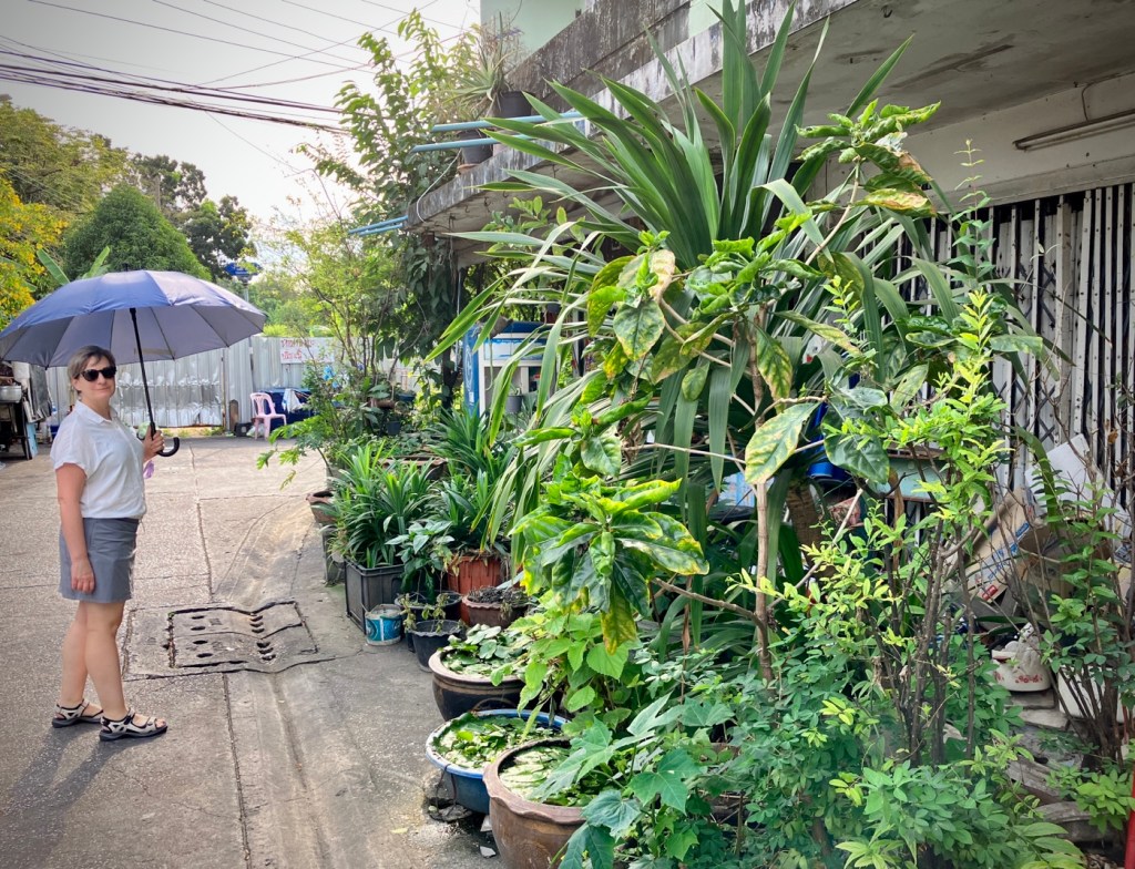 Great meeting fellow travelers Heather and Volkan for a long chat at Chamlong’s vegetarian restaurant near Chatuchak Buddhist Temples can be prominent or tucked away in hidden spots throughout BangkokGreen alleys to quiet living oases…if you could only keep walking