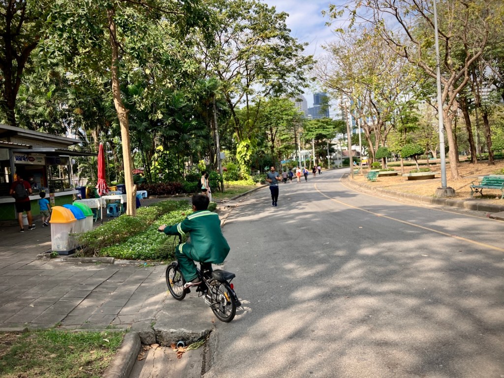 Chatuchak Park next to the mega weekend market of the same name has a great 3 km loop to walk and is very well kept with park staff on bikes. Yeah Bangkok!Lumphini Park is the old main park of Bangkok…still a nice respite with trees, but nearby mega construction and a bit too much “stuff” in the park reduces its luster somewhat Asian Water Lizards are all over the parks and canals of Bangkok, they can grow up to 10 feet!