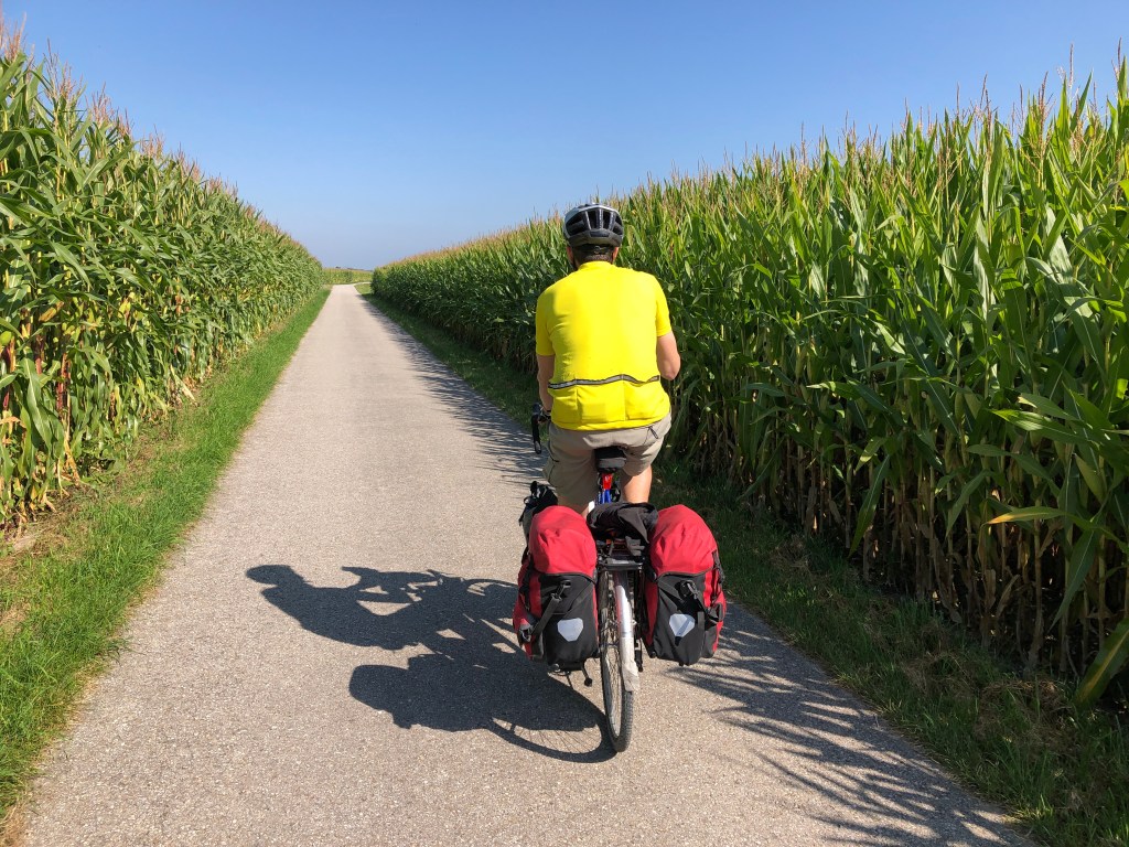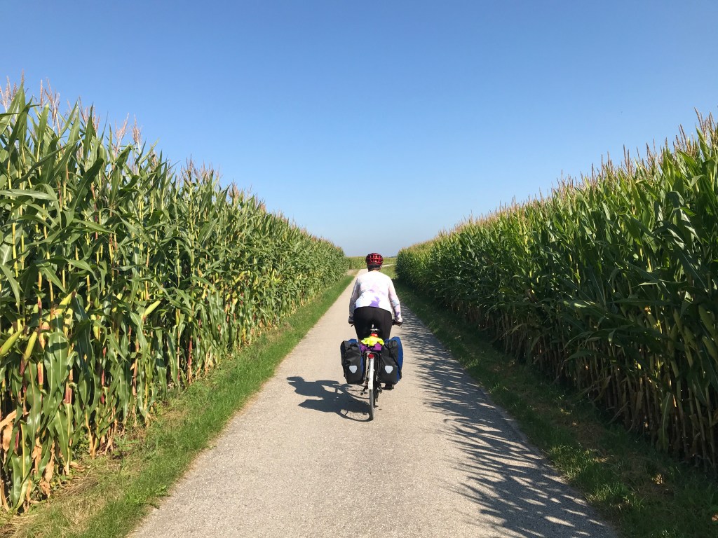 Loads of farmland riding in this part of Germany. On the upside the corn can block the wind, on the downside- little corn gnats if you rode too close to the corn.Will Singer to the rescue. He was super nice and let us leave the bags and bikes until he could find time to fix the bike. He had it done by noon.Really, lots of farmland.Good tram system in Augsburg.