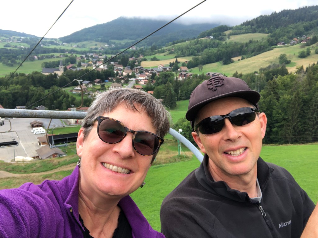 Our own personal gondola ride. Room to play.Another Swiss alpine view from the gondola.A good dinner on the terrace of the youth hostel.