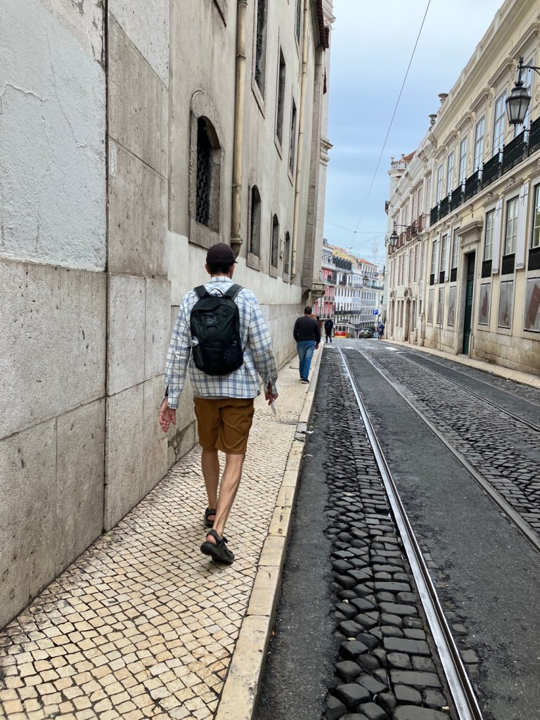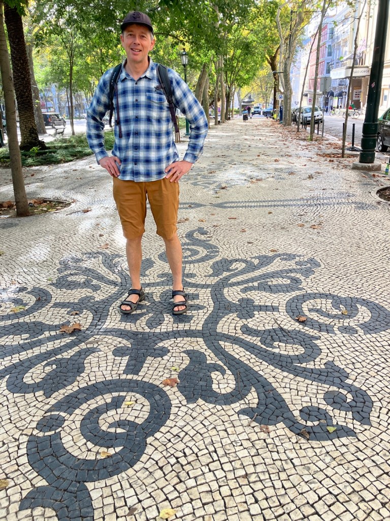 Even with our positive mental attitude firmly in place we just could not enjoy walking around Lisbon. The sidewalks are simply too narrow, and not in great repair. In the more modern part of town, upslope, the traffic signals are set in favor of moving car traffic which means long long waits for pedestrians to get a crossing signal. The intersections can be huge, with so much extra pavement that car drivers have the ability to whip around corners at fairly high speed. We haven’t seen any of what we call Covid-era street improvements like we see in so many other cities, where street space has been reapportioned to give pedestrians and bikes more space, and increase safety.