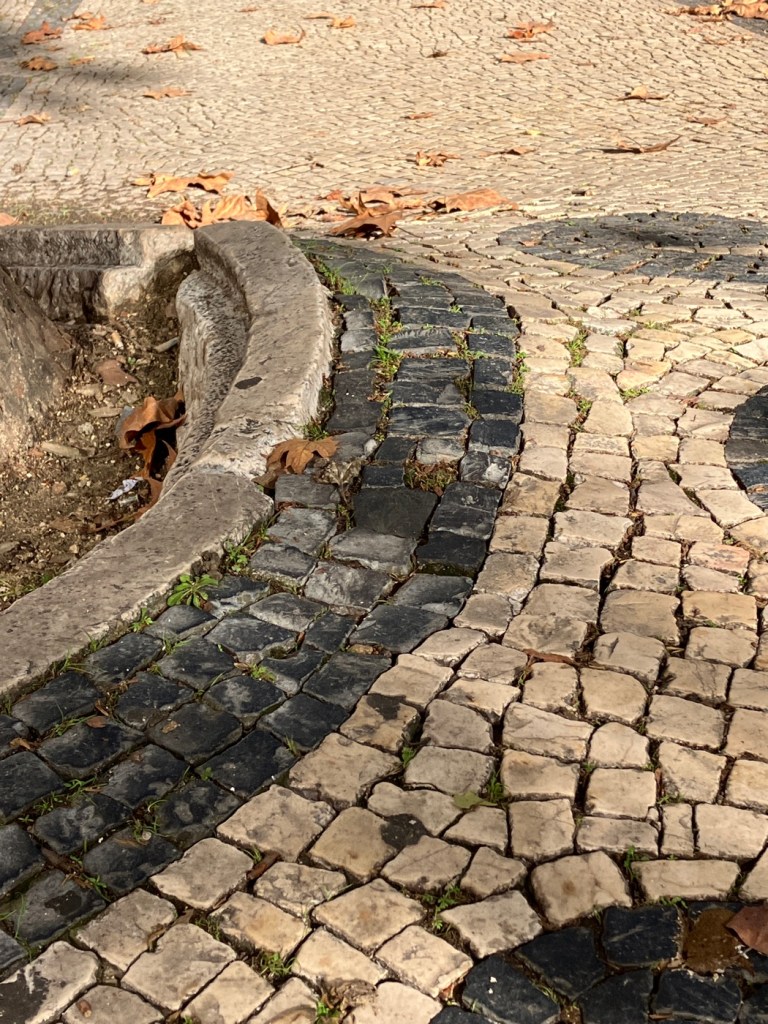 The slightly undulating calçada, and the diamond pattern made me feel as if I were walking on a giant snake. (Imaginative or Covid brain?)