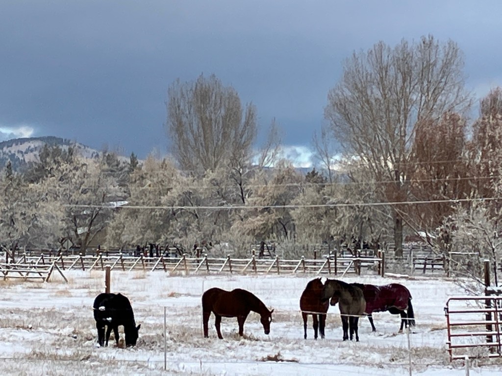 Charlie Kitty helping to keep me warm on a sunny but chilly Colorado day.The snow helped us find even more beauty.The horses might not enjoy the snow as much as we did.With my brother Steve. The snow was melting away as we left to head across the Rockies to Grand Junction. Scratching our itch for Mexican food. A fortifying taco stop in Golden, Colorado.