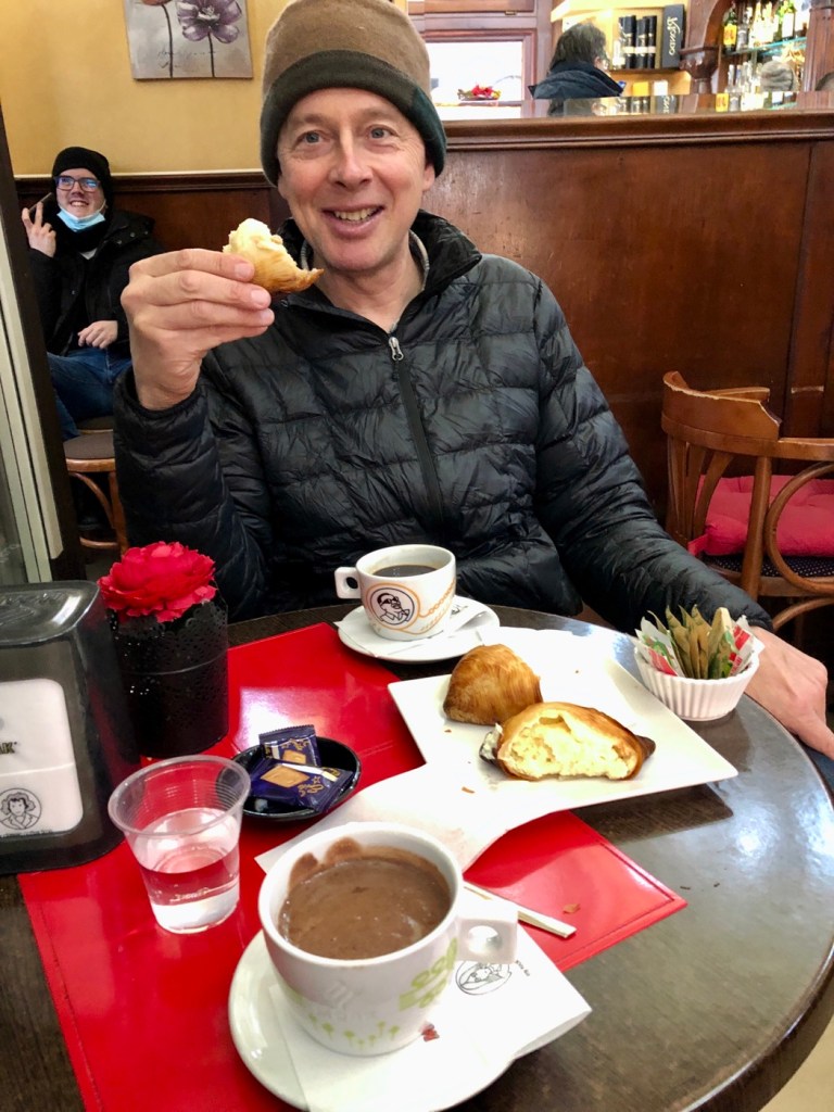 What else did we find delightful in Treviso, the birthplace of tiramisu? Cicchetti, which are small bar snacks like tapas or pinxos, served alongside a beer or wine. A quick aside about bike storage in old towns. It’s not easy to find a hotel with easy and convenient storage for our bikes. The hotel Rich found in Treviso, Palazzina 300, were super accommodating and we were able to store our bikes in one of the owners’ fire wood room about a five minute ride from the hotel. Behind a locked gate and in a room stacked with wood for the winter. The owner pointed out the video camera watching the courtyard and assured us they would be safe.