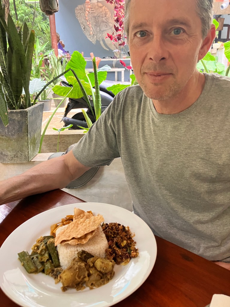 Looking out at the impressive Eth Pokuna or “Elephant Pond” near Lankaramaya. This huge man made water reservoir is part of tbe ancient and amazing water supply network.We loved exploring Anuradhapura, but I was tired of the touts and “tour guides” badgering us…this guy wouldn’t stop talking to me at the Elephant Pond. We always stayed polite.Amazing to be immersed in a living museum, not just an ancient civilization A final rice and curry at our guest house in Anuradhapura…this WAS very tasty, but our taste buds are ready for something new!