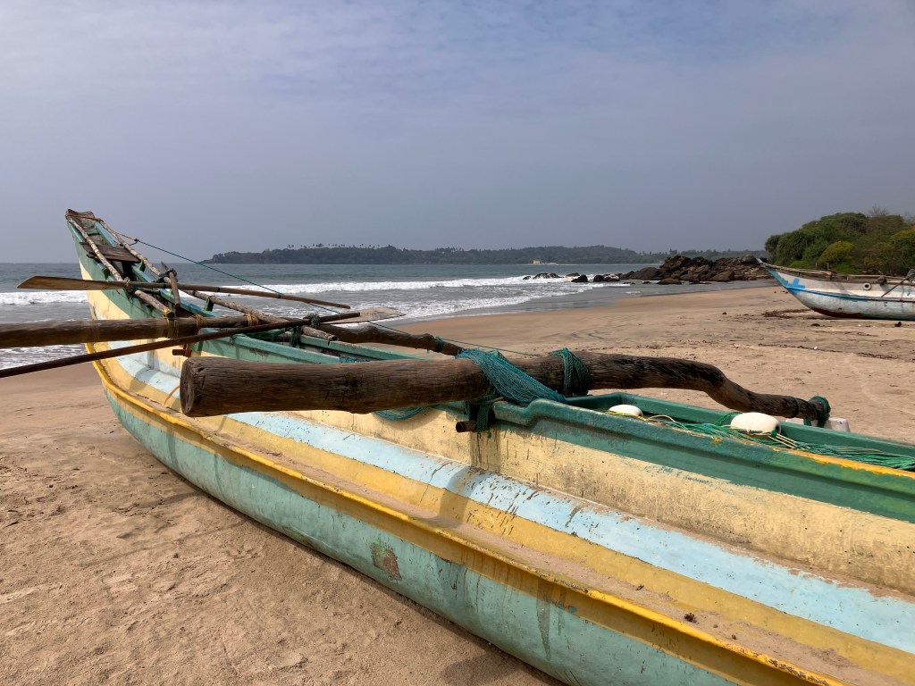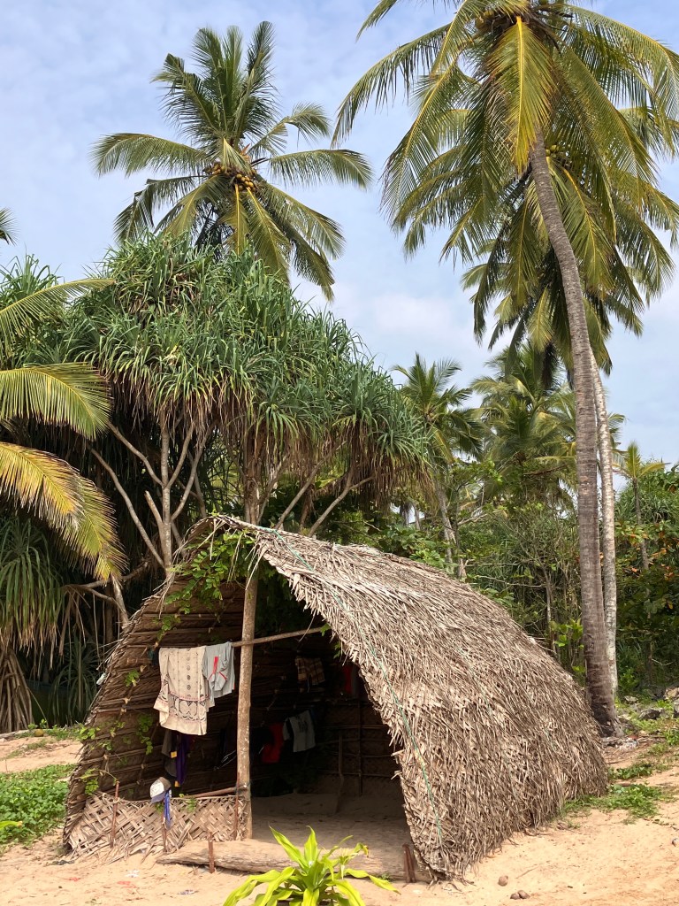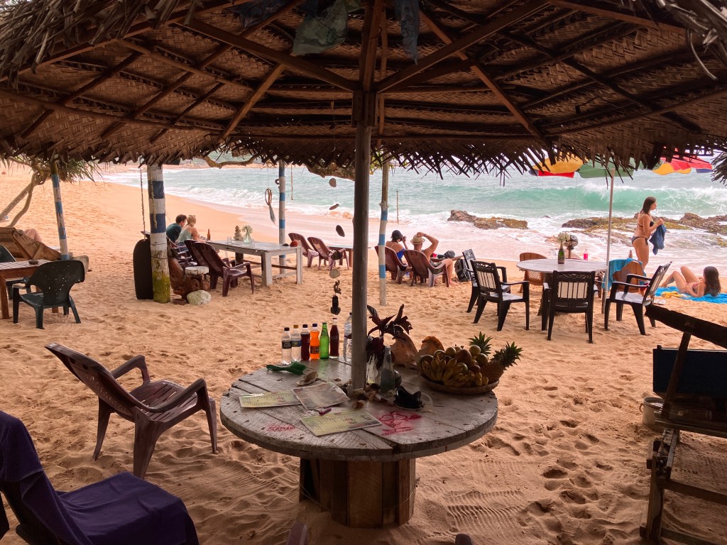 Bright hibiscus and bright houses. Makes walking fun.One of the small beach cafes at Silent Beach. And a couple of the ubiquitous beach dogs. Lunch in the shade at silent beach. The Sri Lankens are very good at decorating to give you that casual beach vibe.Plenty of shade gets approval from me.Another small family restaurant a short walk from our hotel.Plenty of fishing along this coast.Fisherman’s break hut? The beaches here are quite clean. Rich doing his part to help keep them that way.Roadside fish stands to sell the catch.