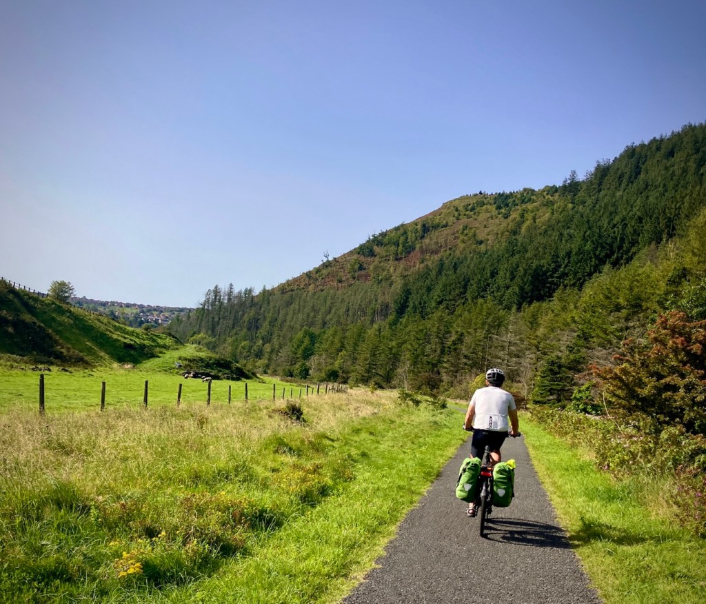 2. What is the nicest route.? Heading to a UK national route or Eurovelo was a logical choice and the western route out of Treorchy landed us in the Afan valley, which looked to have a beautiful rail trail along the Afan river. It was also the pass we looked at for 12 days from the deck of our house sit, so it beckoned.